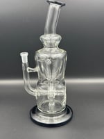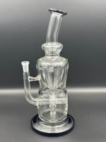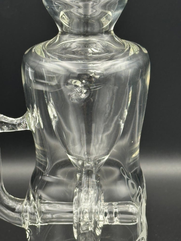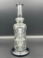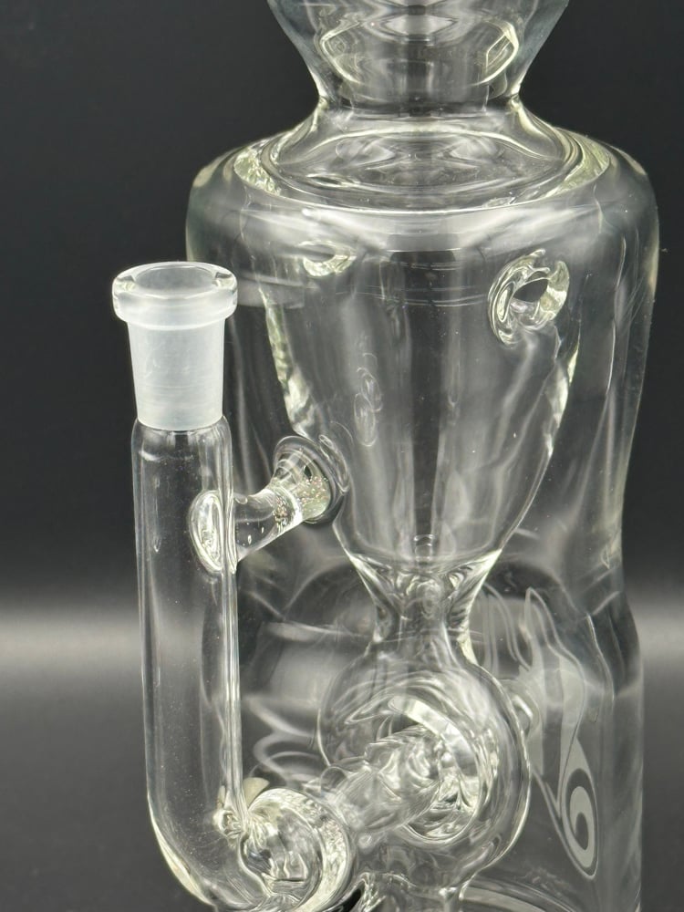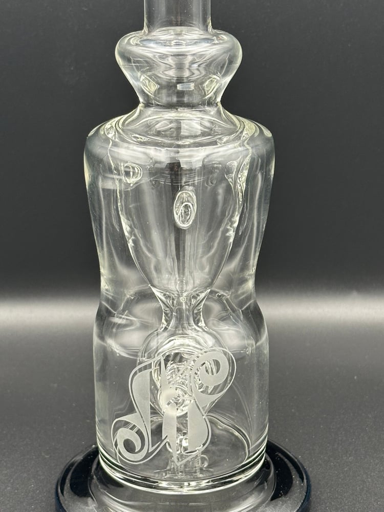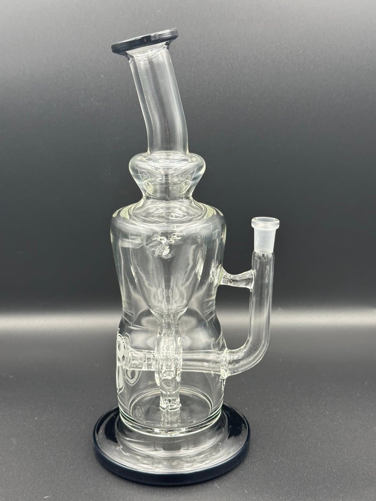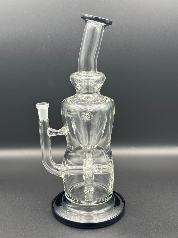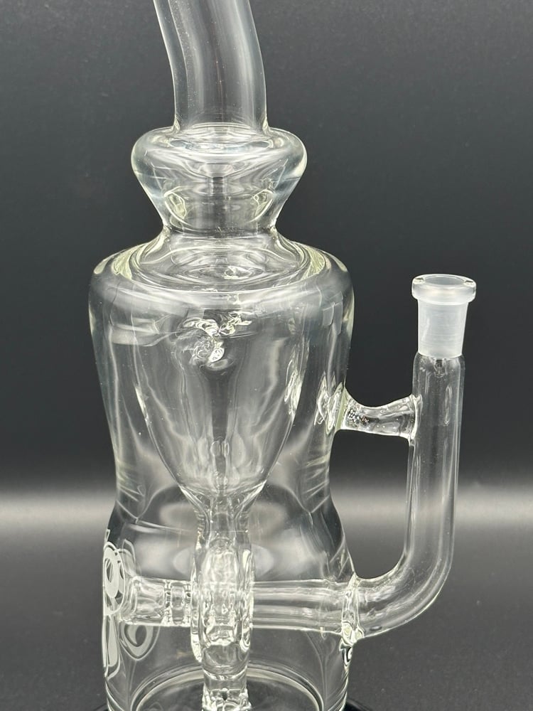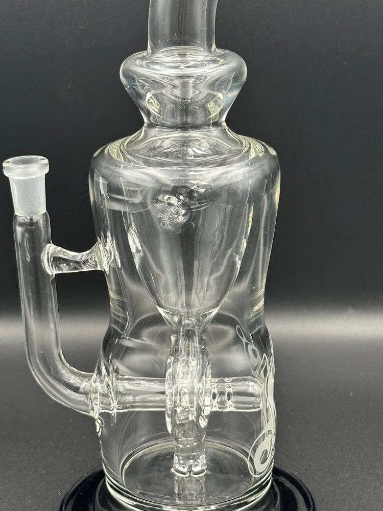These incycler are the newest addition to my product line. These clear versions are great for function and simplicity. These feature ten female with 8 slit gridded perk. Thes stand about 10 inches with 4 inch base. The can is 65 mm heavy wall. These are durable production pieces.